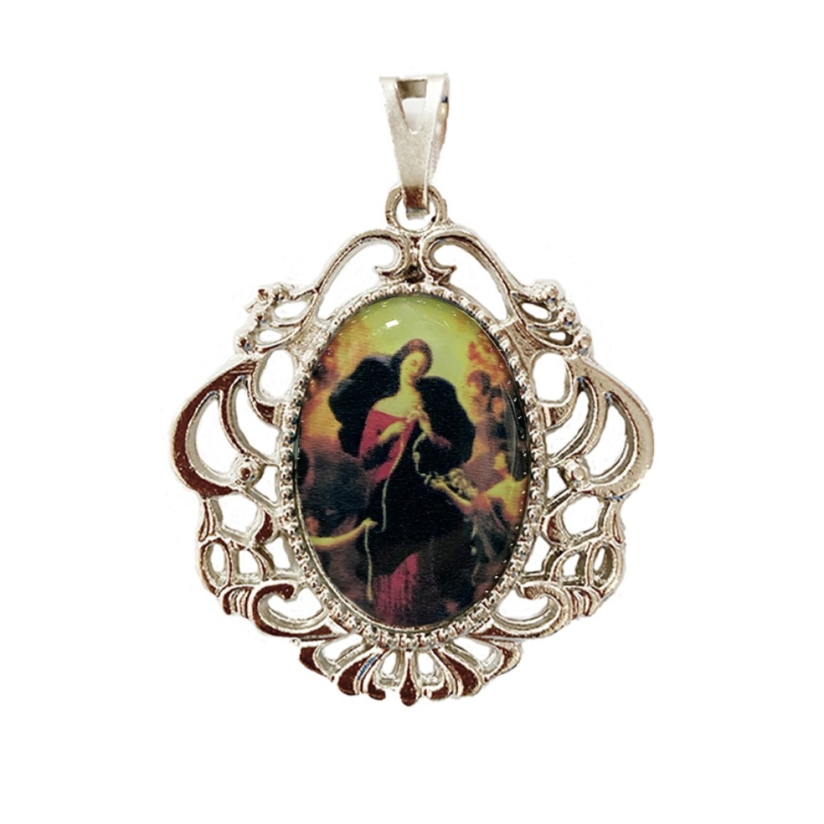 MD129029 - Medalha N. Sra. Desatadora dos Nós Camafeu Níquel - 4,5x4cm