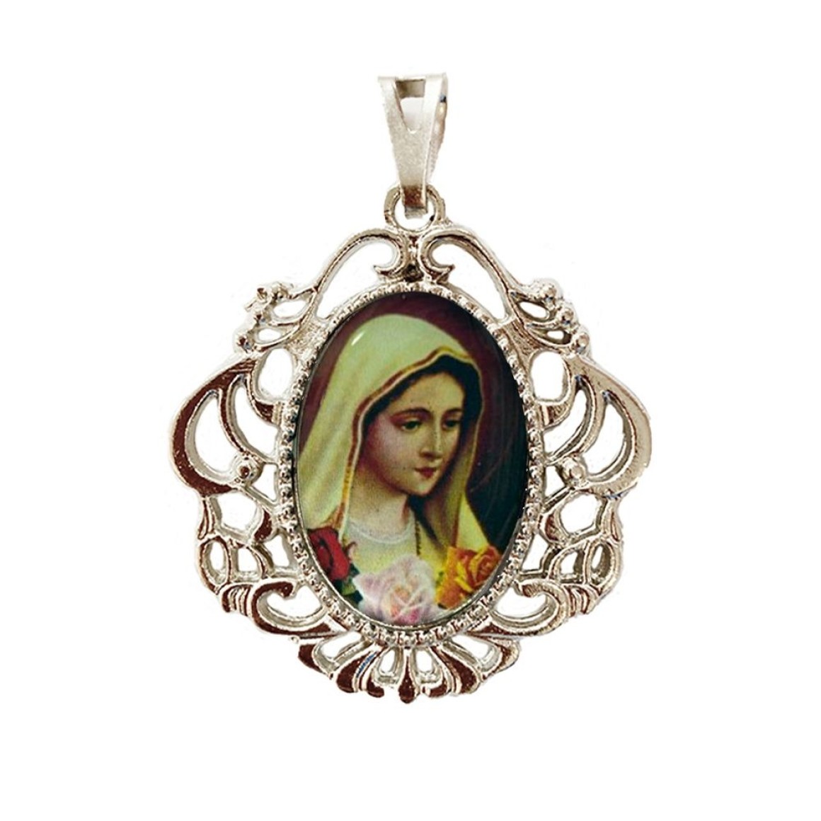 *Medalha N. Sra. Rosa Mística Camafeu Níquel - 5x4,2cm.
