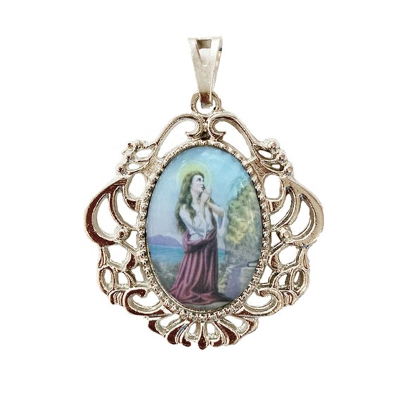 MD129066 - Medalha Santa Maria Madalena Camafeu Níquel - 4,5x4cm