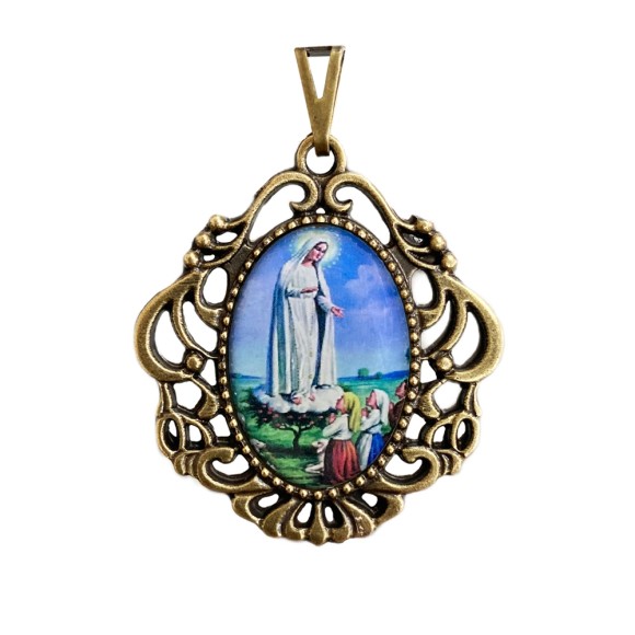 *Medalha N. Sra. de Fátima Camafeu Ouro Velho - 4,5x4cm.