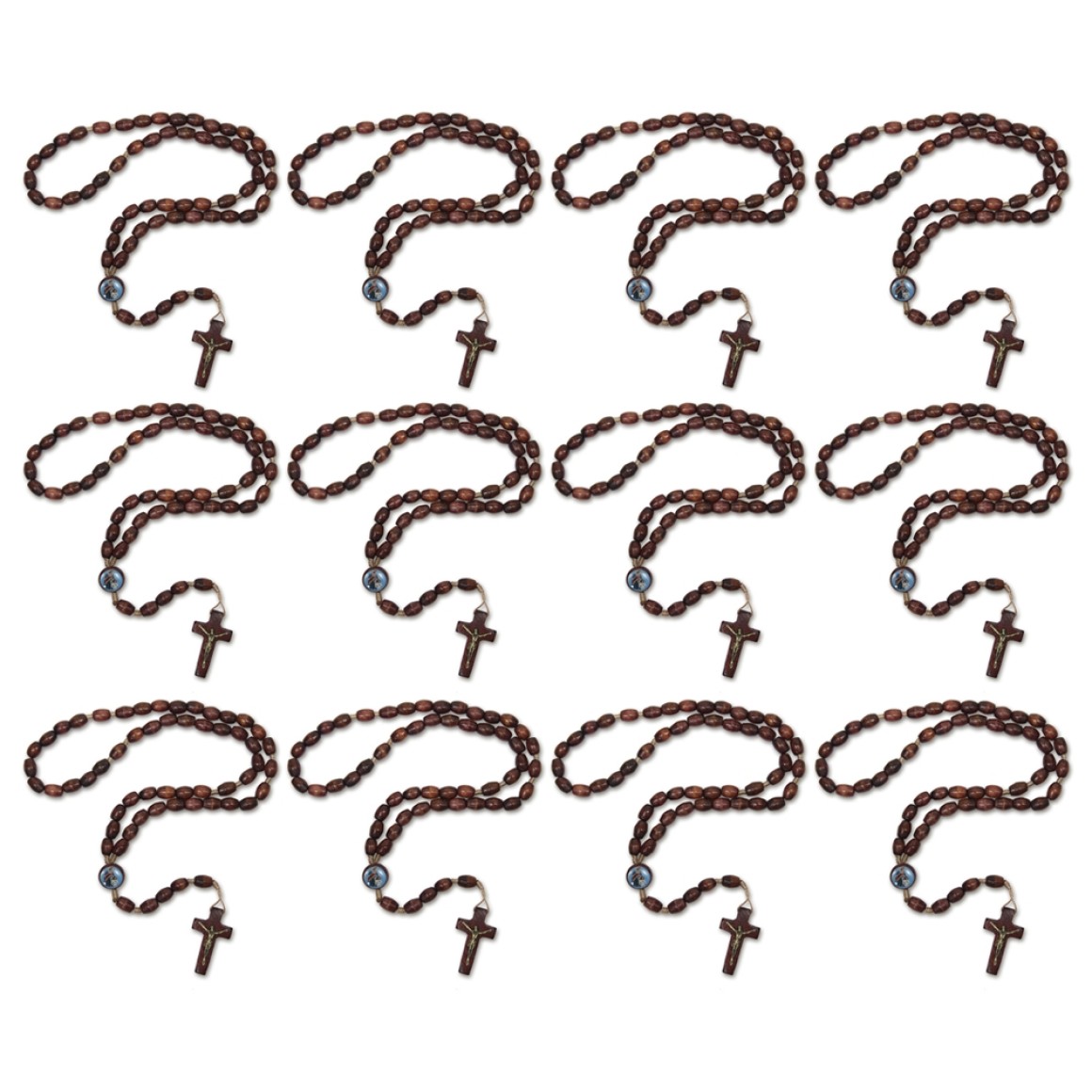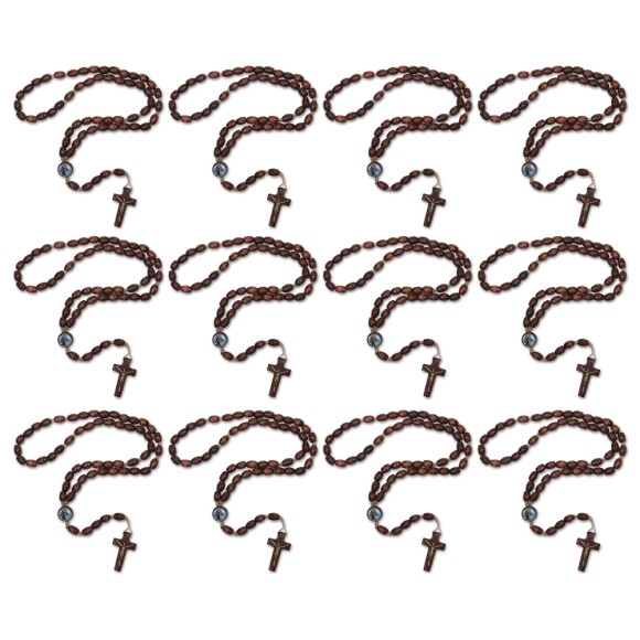 TE942016P12 - Terço Maria Passa na Frente Madeira c/ 12un. - 47cm