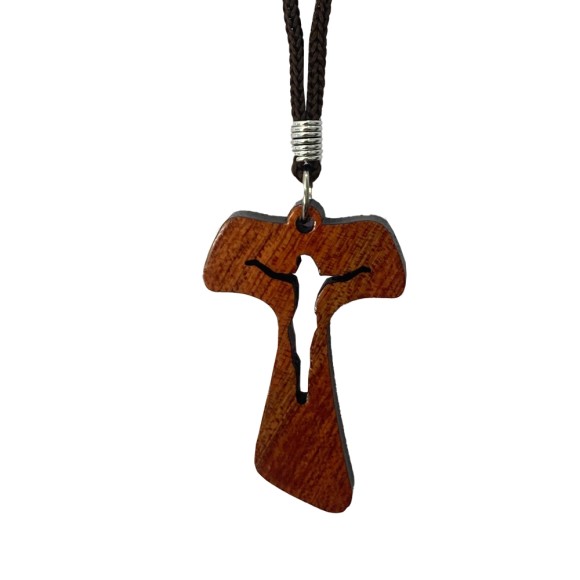 CC1484000 - Cordão c/ Tau de Madeira Vazado c/ Cristo - 42cm