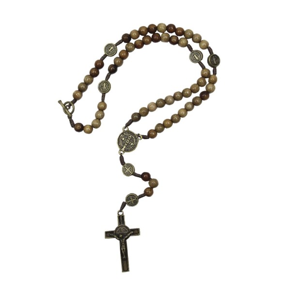 *Terço São Bento Madeira c/ Fecho - 41cm.