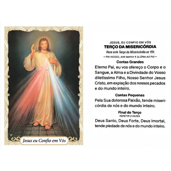 *Oração Jesus Confio em Vós Terço c/ 100un. - 9,5x6,5cm.