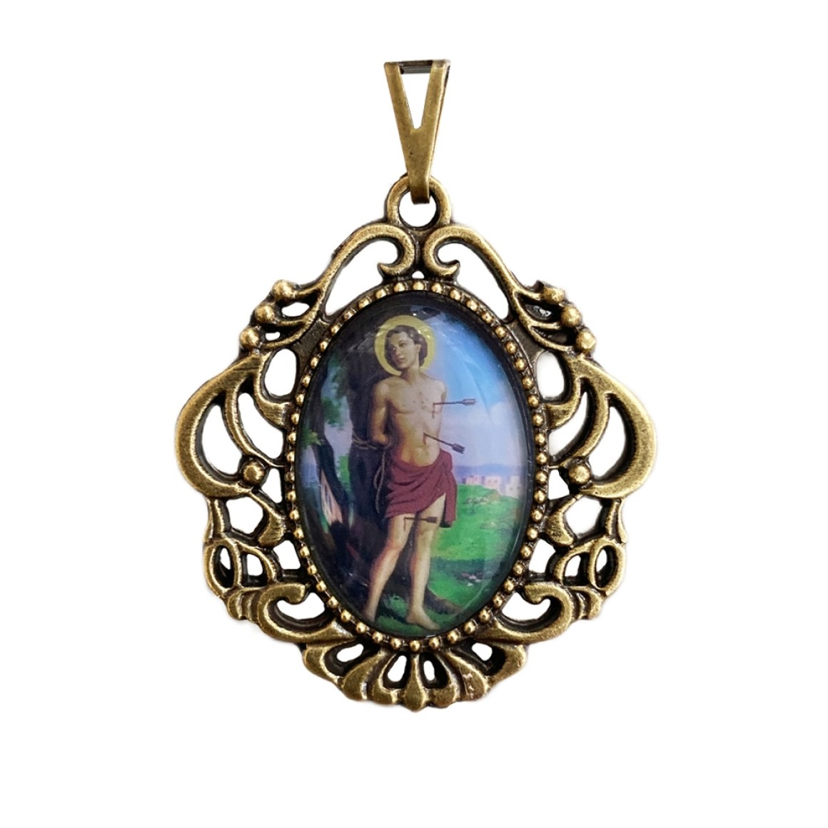 *Medalha São Sebastião Camafeu Ouro Velho - 5x4,2cm.