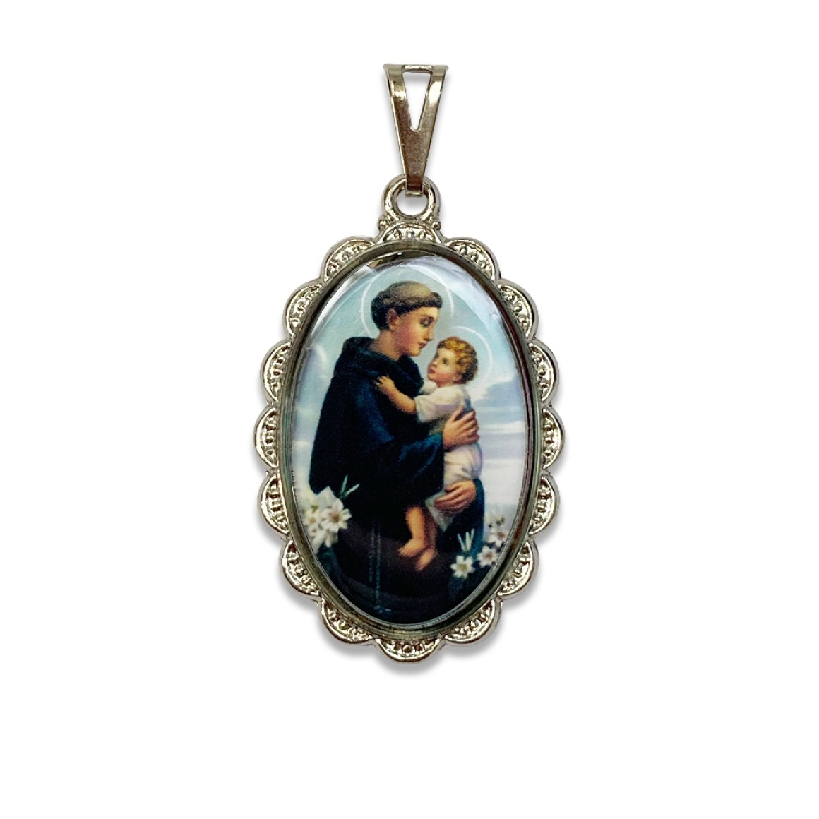 *Medalha Santo Antônio Rendada Níquel - 4,1x2,6cm.