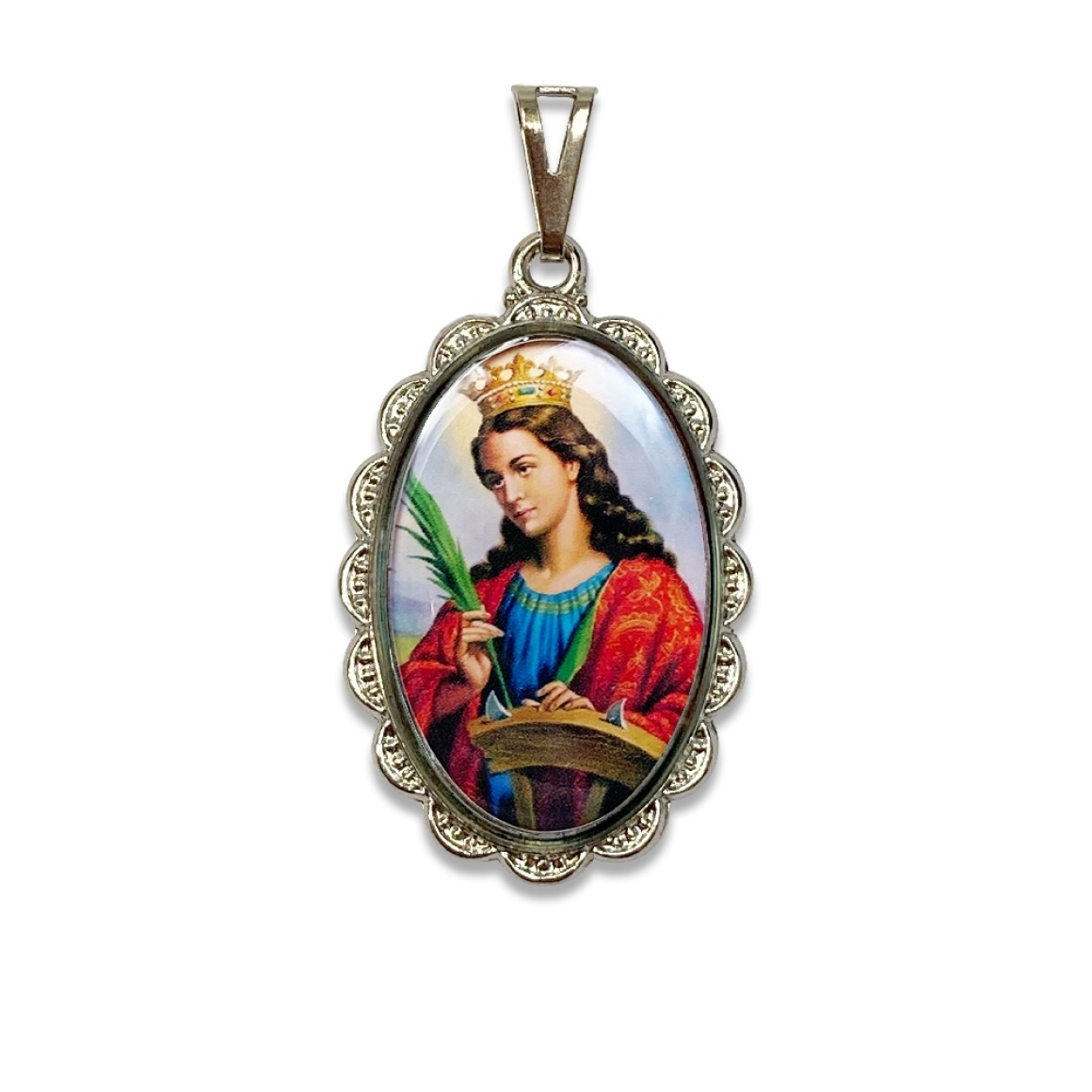 *Medalha Santa Catarina Rendada Níquel - 4,1x2,6cm.